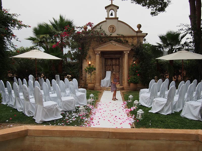 Grâce à sa propre petite église, la finca de luxe « Santa Lucia » est idéale pour les mariages et les festivités ecclésiastiques. Cette propriété historique est un joyau d’exception à Majorque, situé au cœur de la région viticole de Binissalem, au pied des montagnes Tramuntana. Le parc attenant avec des citronniers et des palmiers offre un cadre enchanteur pour les mariages d’église pouvant accueillir jusqu’à 120 personnes. A côté de l’église dans le parc abrite un studio de peinture, des écuries de style hacienda, des aires d’équitation et des garages, ce qui rend la propriété idéale pour les fêtes avec toute la famille.